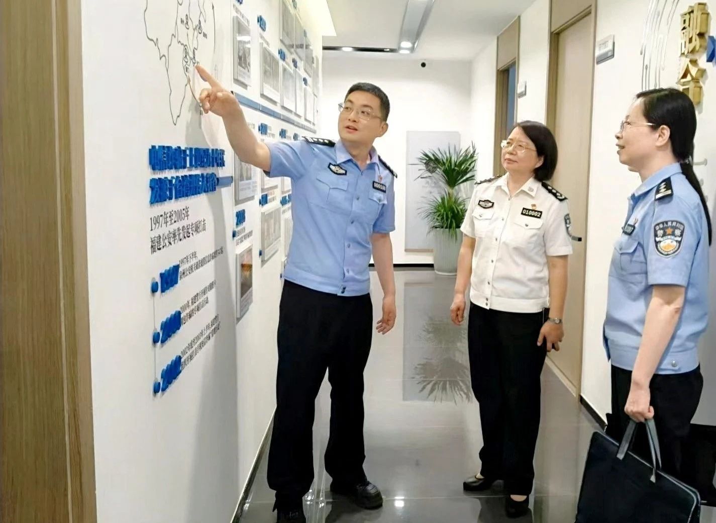 5月23日下午,学院院长胡宝珍到省公安厅侦查(反诈)中心实习基地走访,看望我院2022级公安类专业实习生。省公安厅党委委员、副厅长陈文荣出席,省厅刑侦总队总队长董军以及省厅侦查(反诈)中心、福州市公安局教育训练处、学院教务处有关人员参加。
